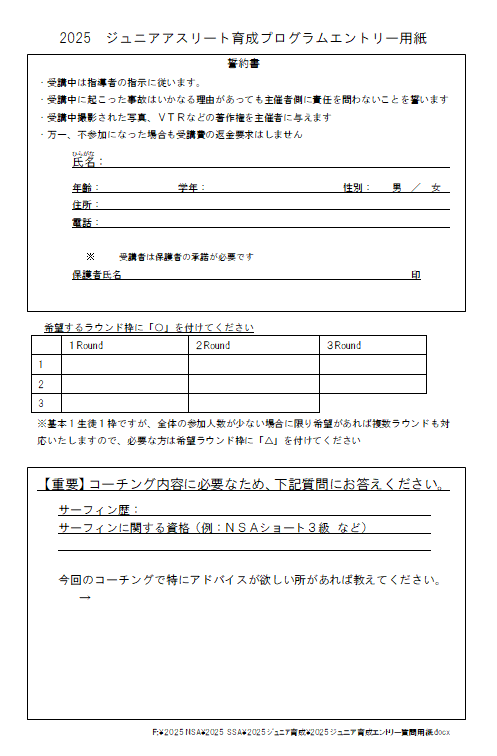 ジュニアアスリート育成プログラムエントリーについてお知らせです