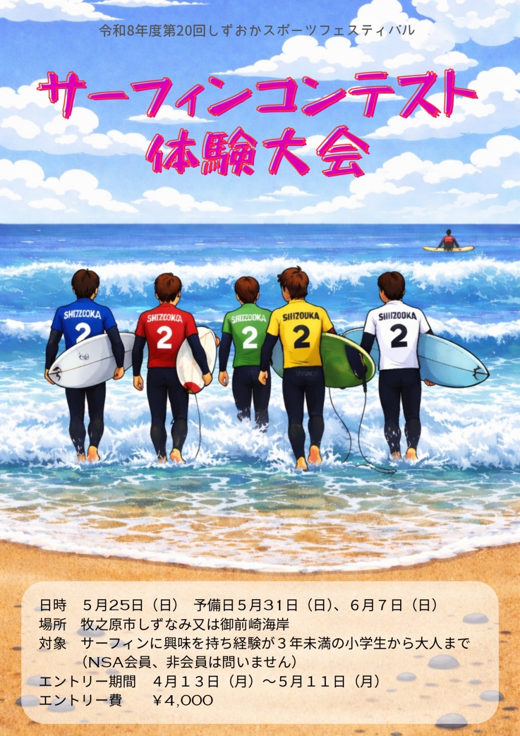 ・エントリー費は指定口座振り込み、もしくはNSA静岡2区協力店(サーフショップ)にて受付します。